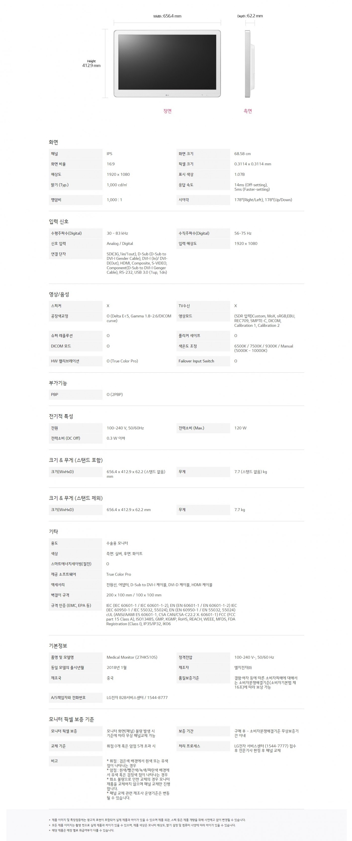 용도 : 수술용 모니터화면 크기 : 68.58 cm해상도 : 1920 x 1080