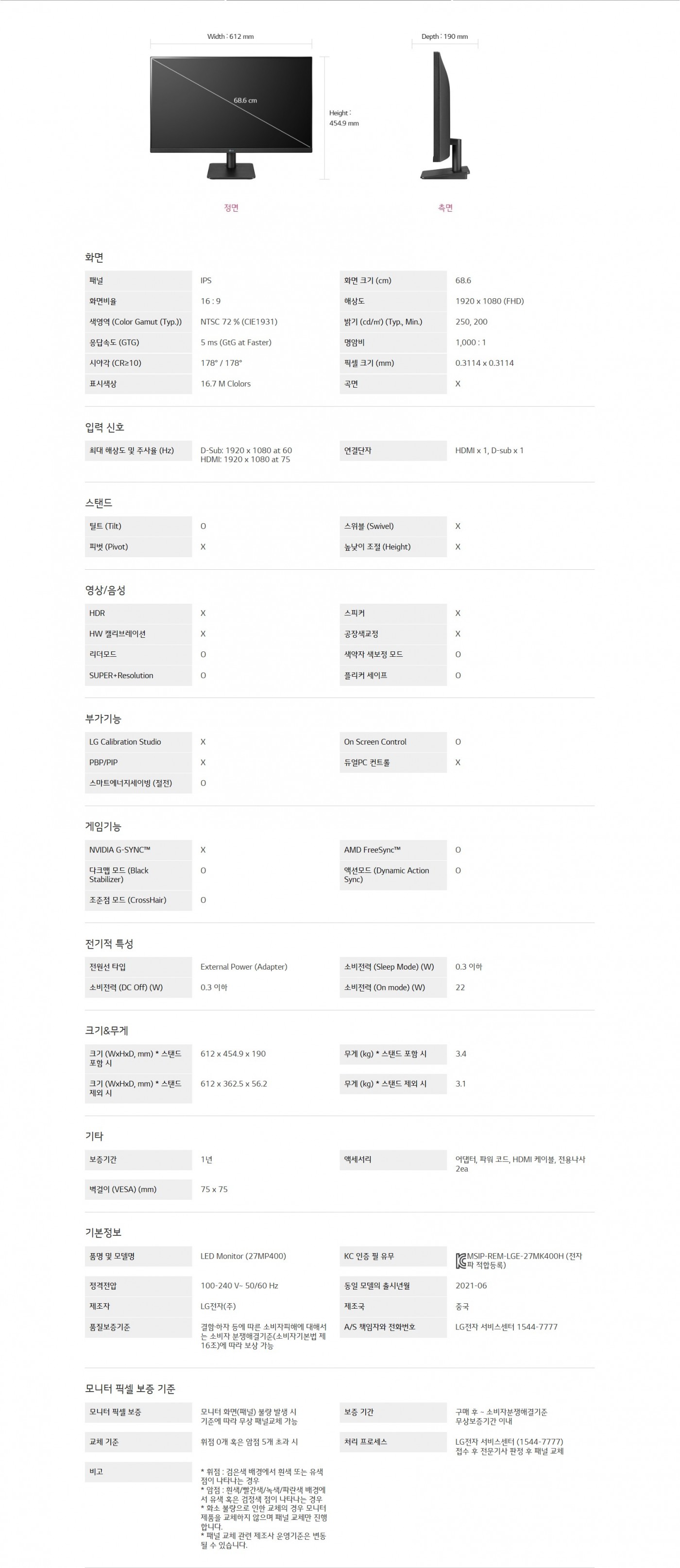화면 크기 (cm) : 68.6