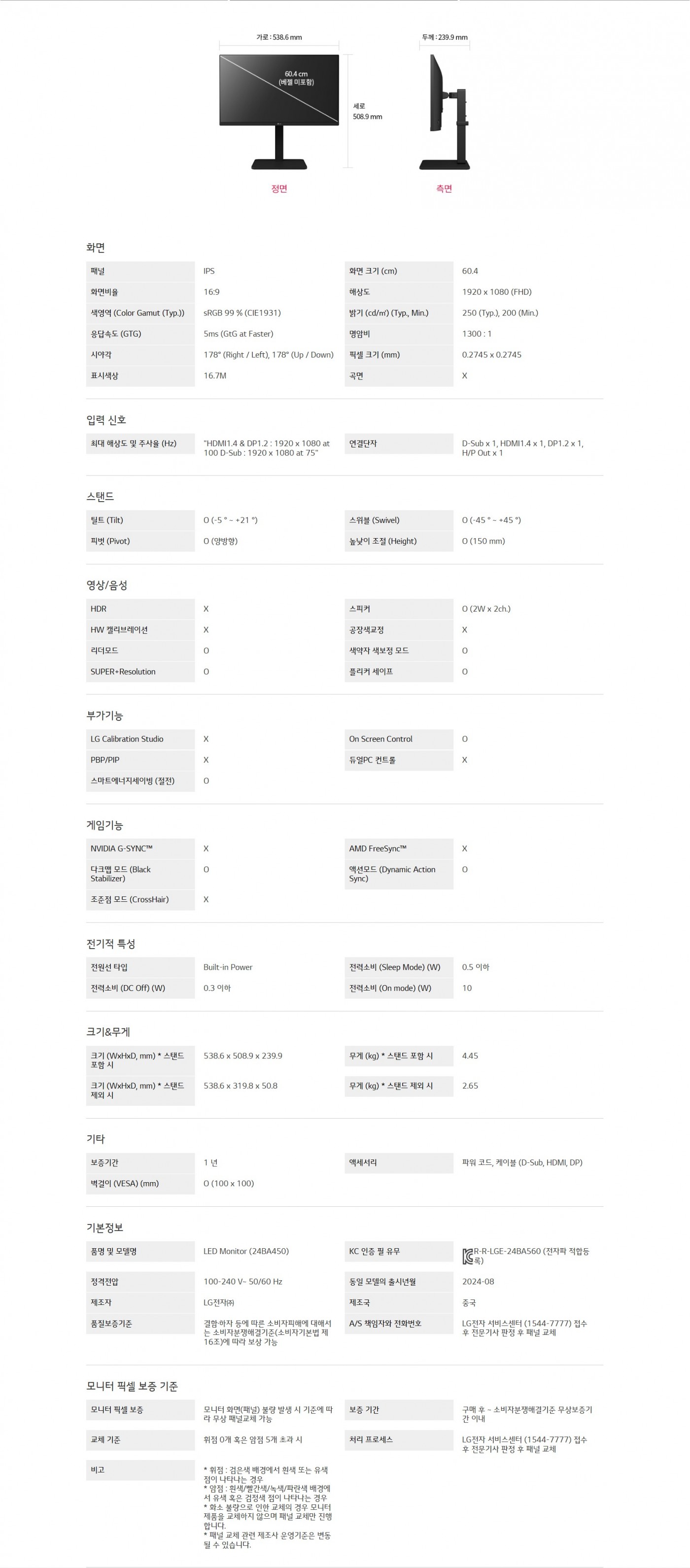 화면 크기 : 60.4 cm