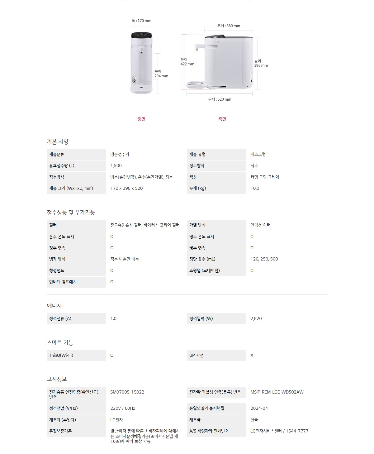 LG 퓨리케어 오브제컬렉션 정수기(스윙, 냉온정)