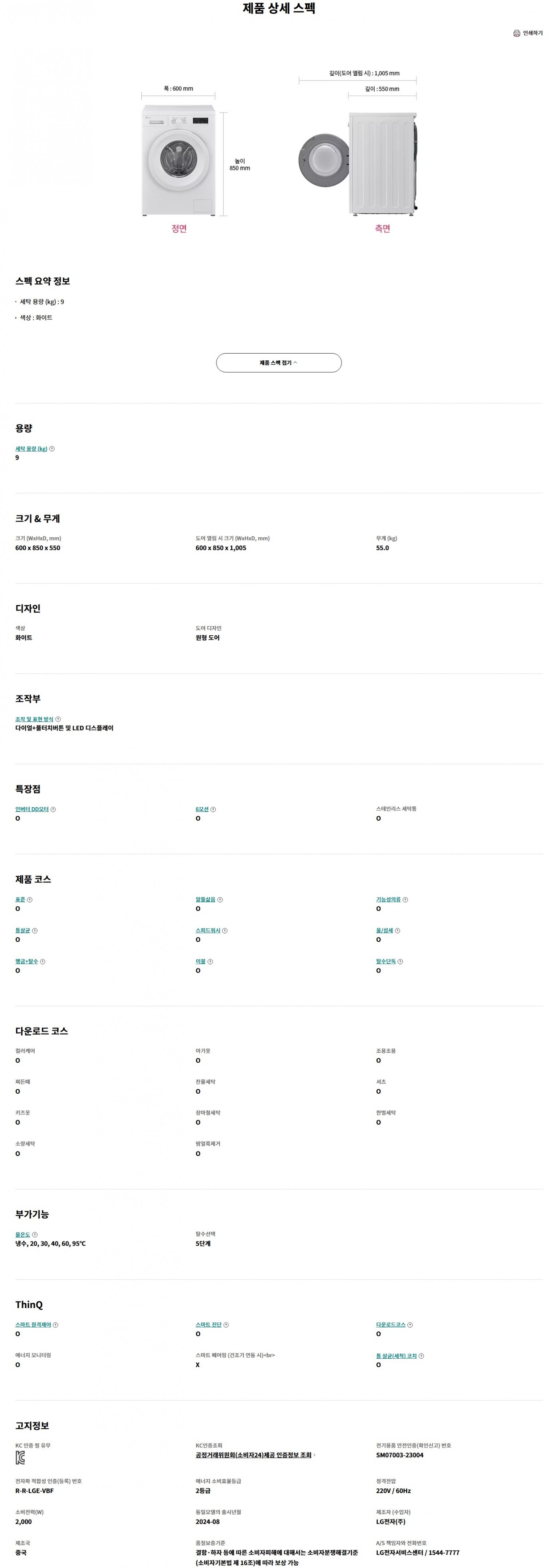 9kg 세탁 용량