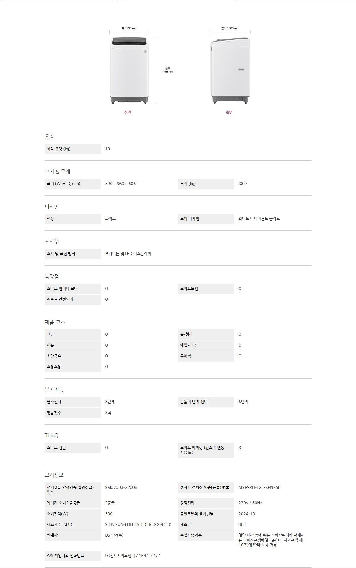크기 (WxHxD, mm) : 590 x 960 x 606