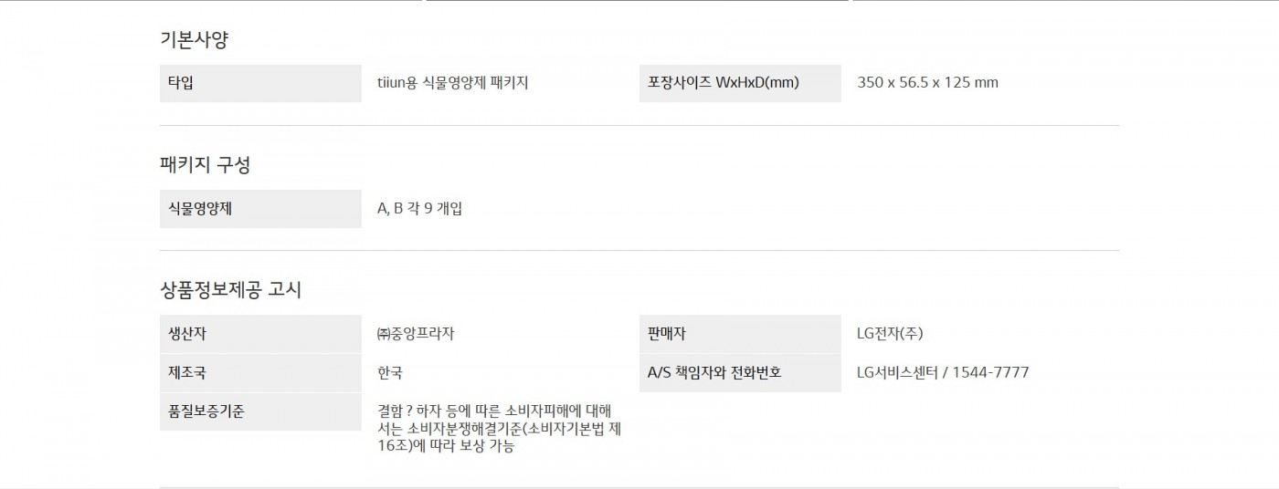 LG 틔운용 식물영양제 패키지