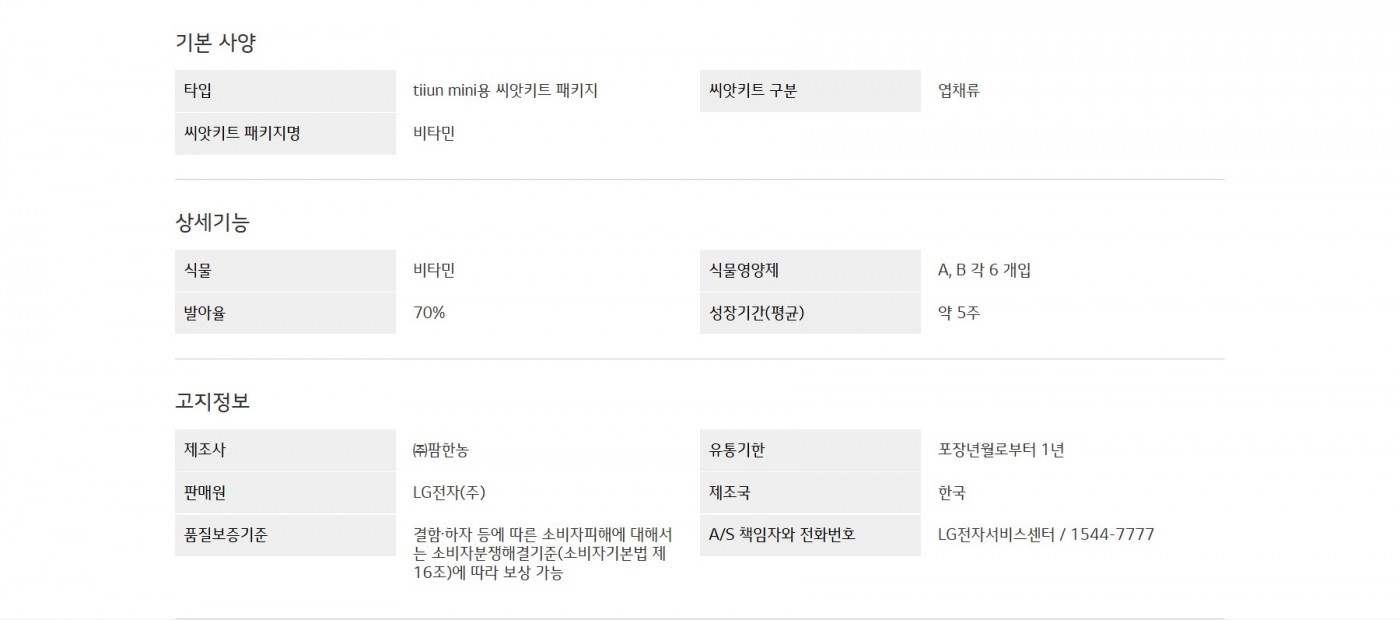 LG 틔운 미니용 씨앗키트 패키지 (비타민)